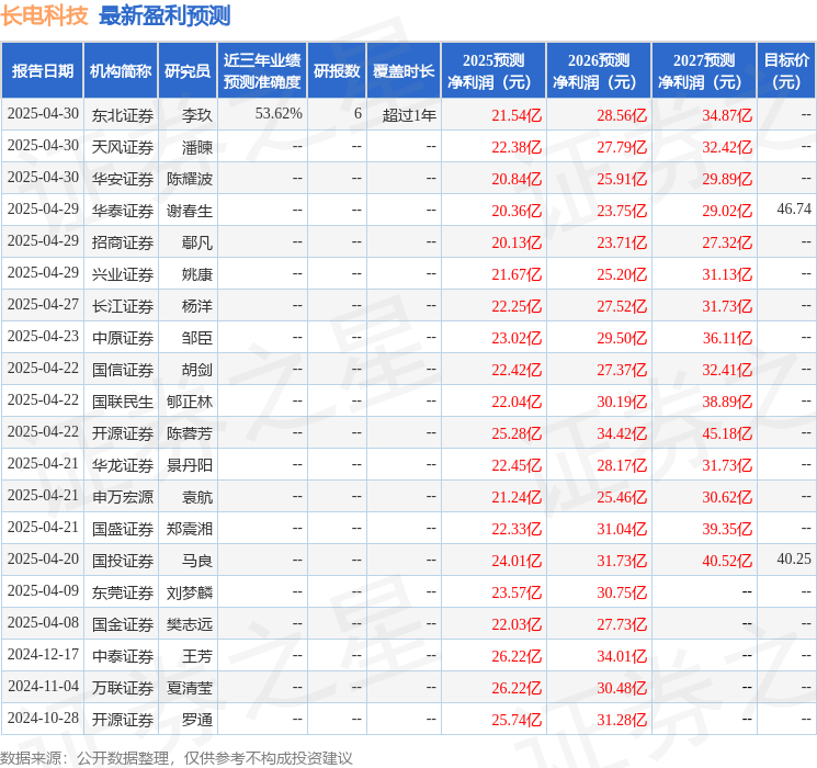 证券之星数据中心根据近三年发布的研报数据计算,东北证券李玖研究员团队对该股研究较为深入,近三年预测准确度均值为53.62%,其预测2025年度归属净利润为盈利21.54亿,根据现价换算的预测PE为28.6。